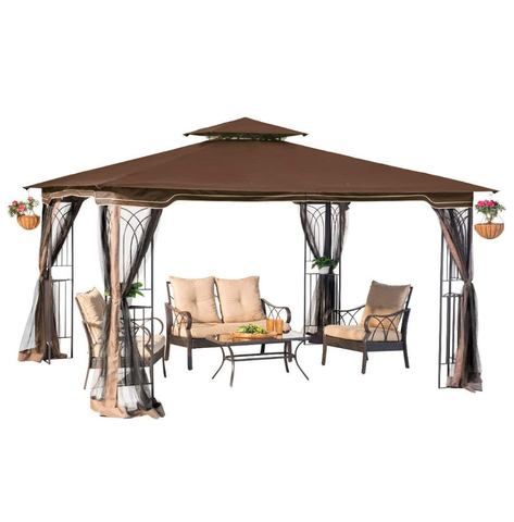 10x10 açık parti çelik çerçeve çift yumuşak üst Gazebo örgü ile
