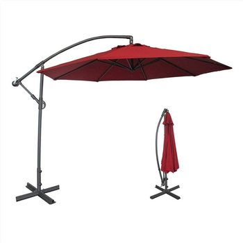 Polyester kumaş kırmızı taşınabilir 10ft ofset asılı veranda şemsiye ile çapraz taban