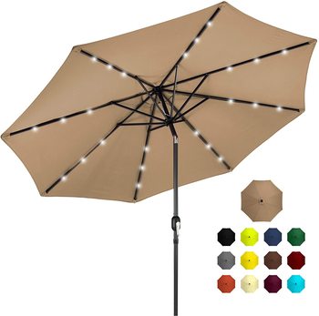 Açık bahçe 10ft güneş enerjili alüminyum Polyester veranda şemsiye ile led güneş aydınlatma